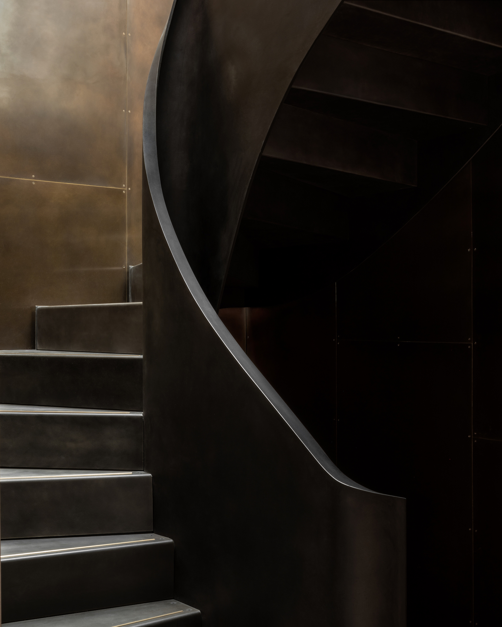 Brass and steel staircase, designed as a central element of a private mews house in Mayfair.